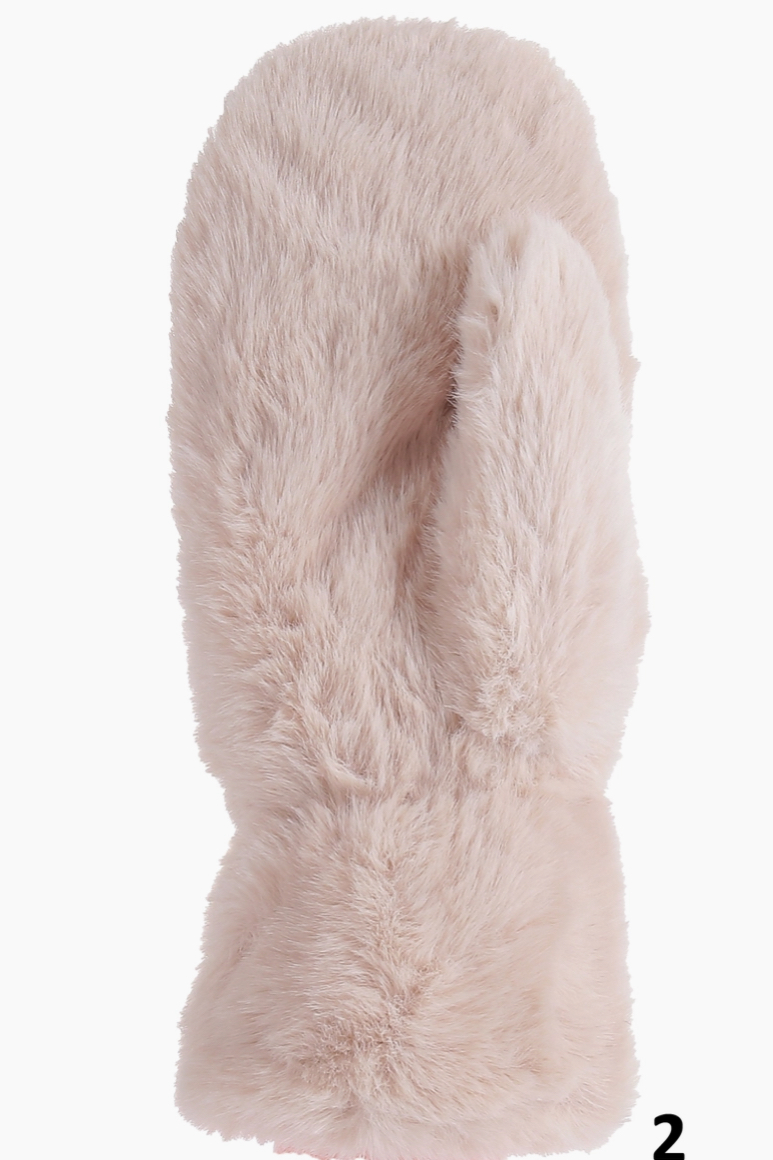 Cozy faux‑fur mittens with a plush, furry lining for extra warmth on chilly days. The Furry Lined Mittens have a soft, full-pile exterior and a single‑thumb mitten silhouette that locks in heat. Perfect for everyday winter wear or as a stylish layering accessory.