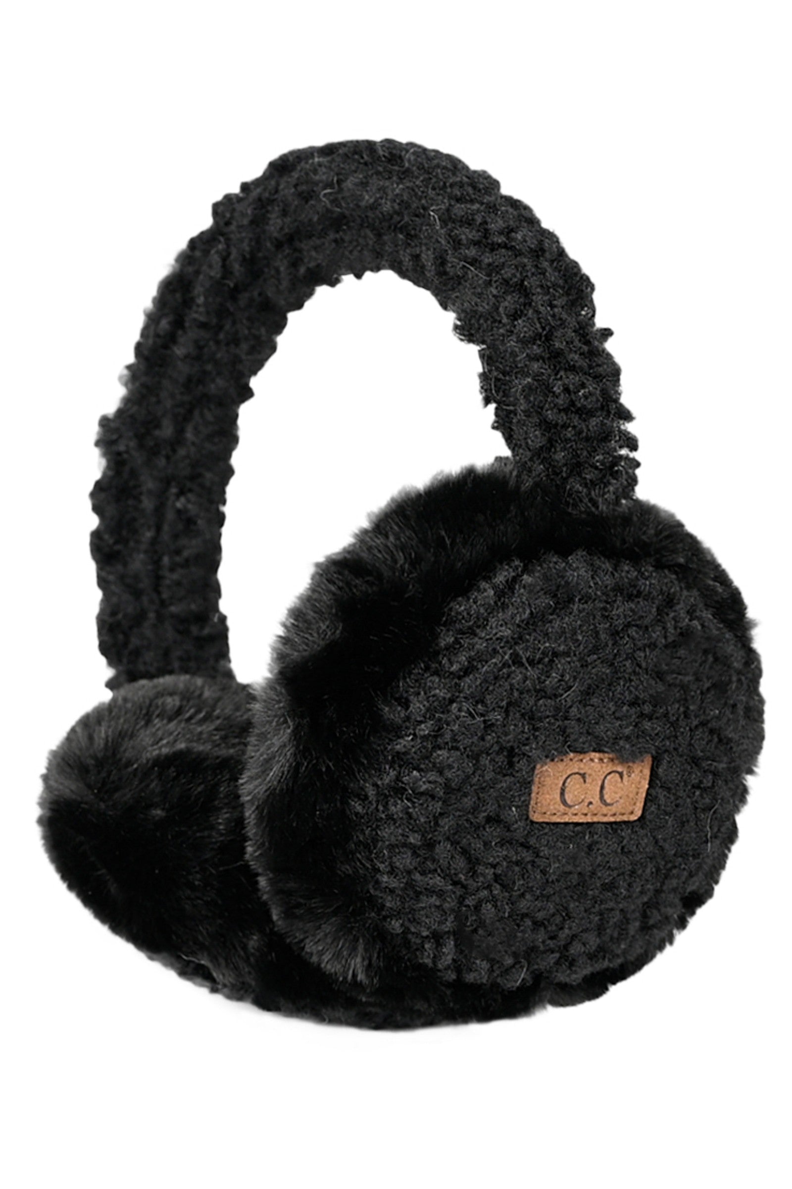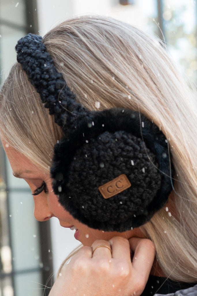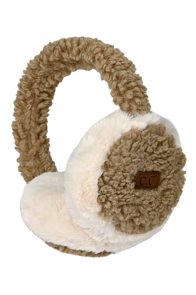 Cozy sherpa-lined earmuffs designed to keep ears warm in cold weather. The Sherpa CC Earmuffs feature plush faux-sherpa padding and a covered headband for a soft, insulated fit. C.C offers a simple, neutral styling that tucks easily into a winter bag or glove compartment for on-the-go warmth.