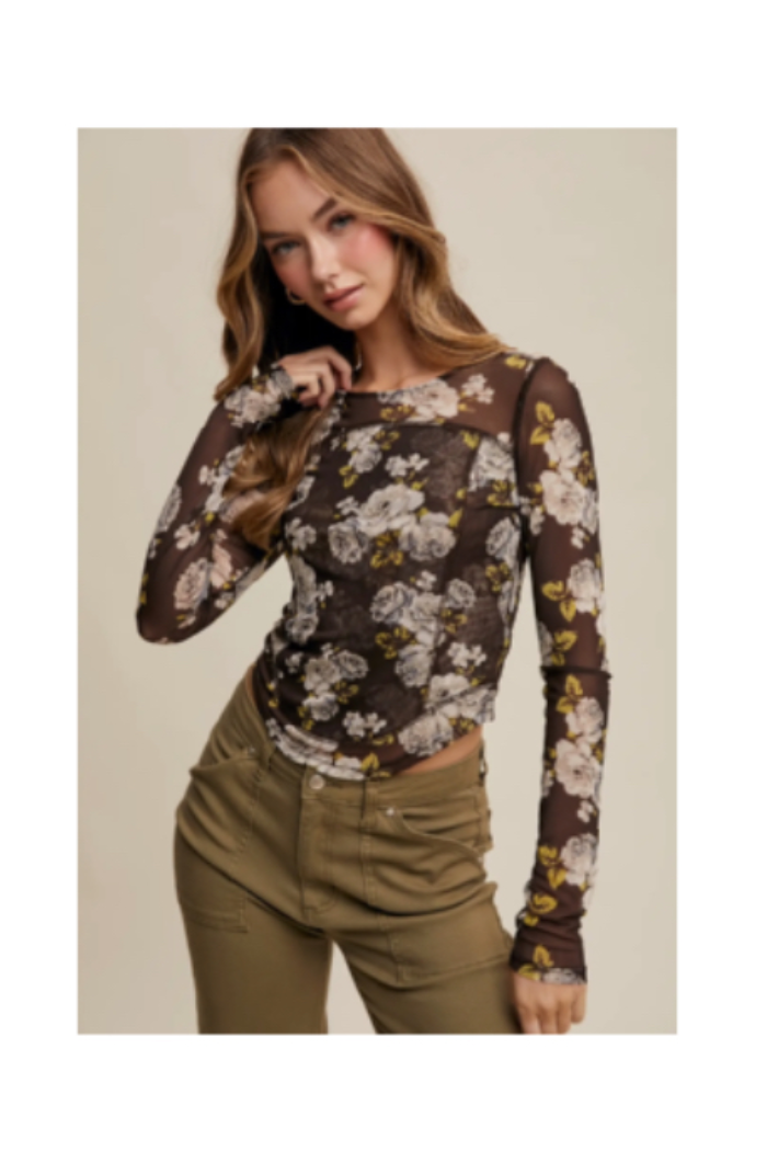 This floral mesh top combines elegance with comfort. The stretchy fabric and double-layered bodice ensure a flattering fit, making it perfect for casual outings, date nights, or layering with your favorite pieces.