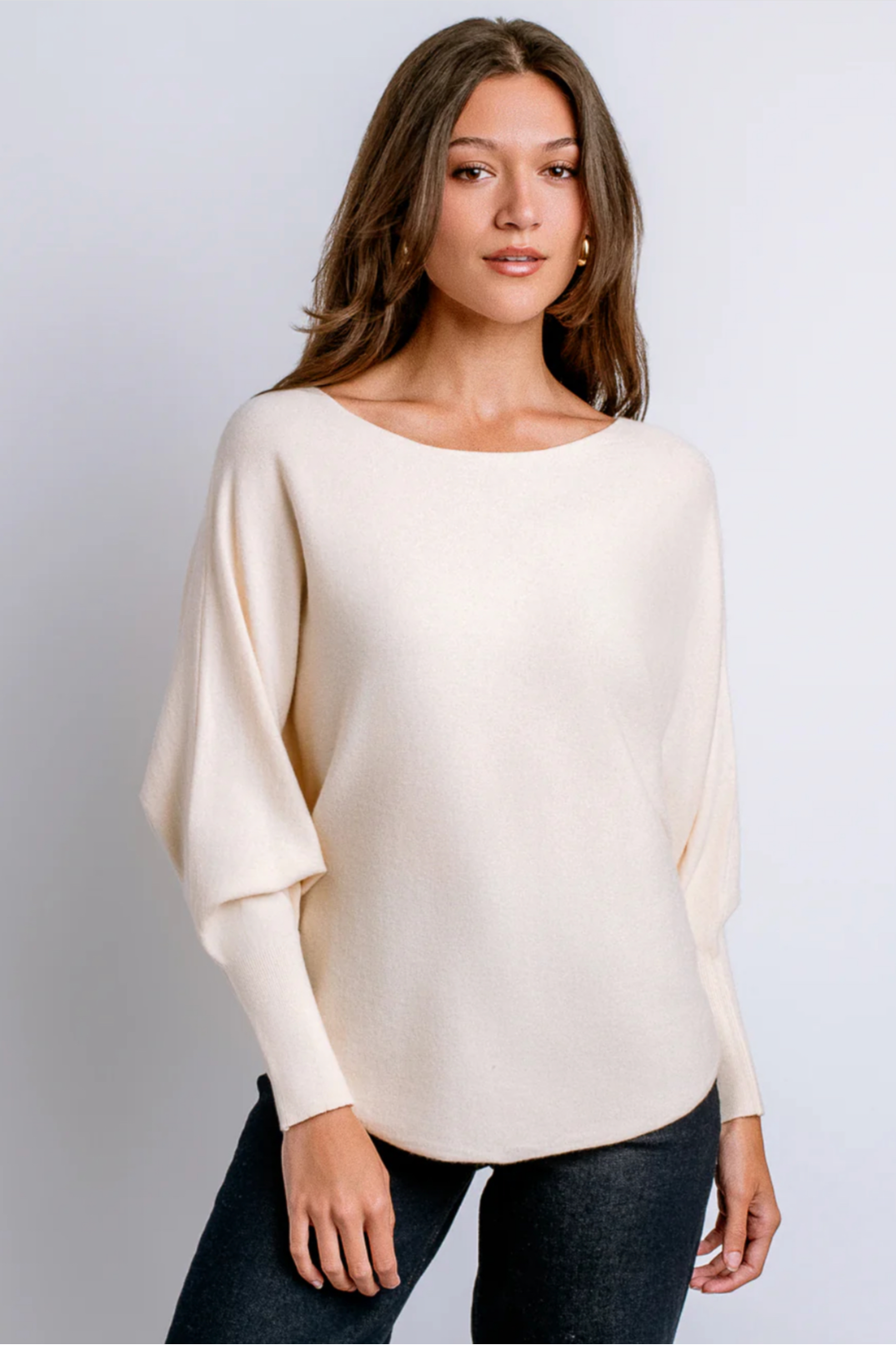A relaxed, lightweight Super soft sweater with a wide scoop neckline and slouchy dolman sleeves, the RYU Thin Top offers effortless layering. Wear it with jeans or tailored trousers for a casual, cozy-at-home look.
