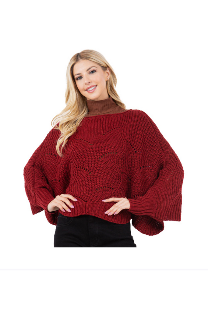 Soft Sweater Knit Patterned Sleeved Poncho. This is a must have for Fall!!