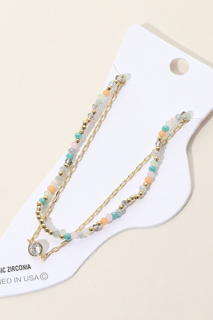 Bezel Accent Paperclip Chain Faceted Beaded Layered Anklet