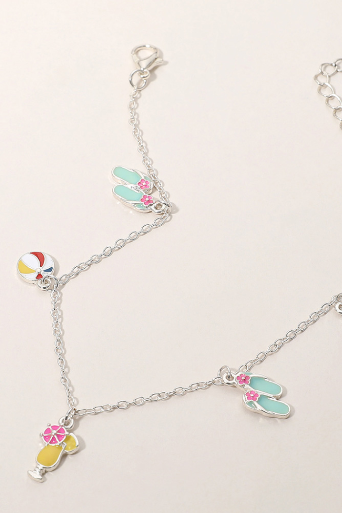 Flip Flop Cocktail Beach Ball Charm Station Anklet