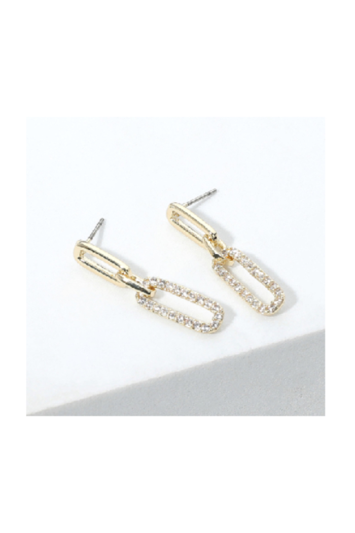 14K Gold Plated CZ Stone Paved Paperclip Chain Dropdown Earrings