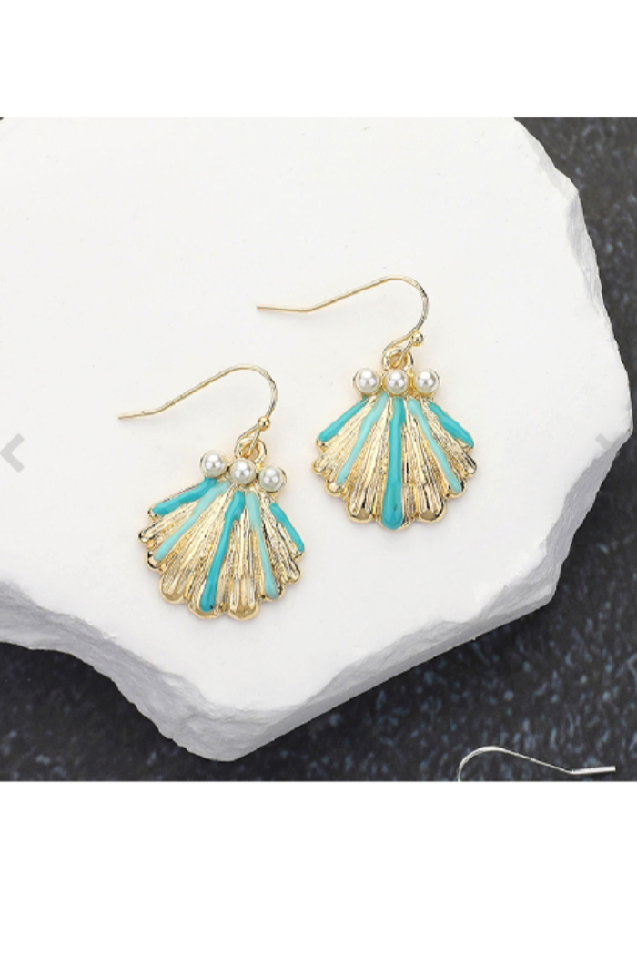 Pearl Enamel Painted Shell Dangle Earrings