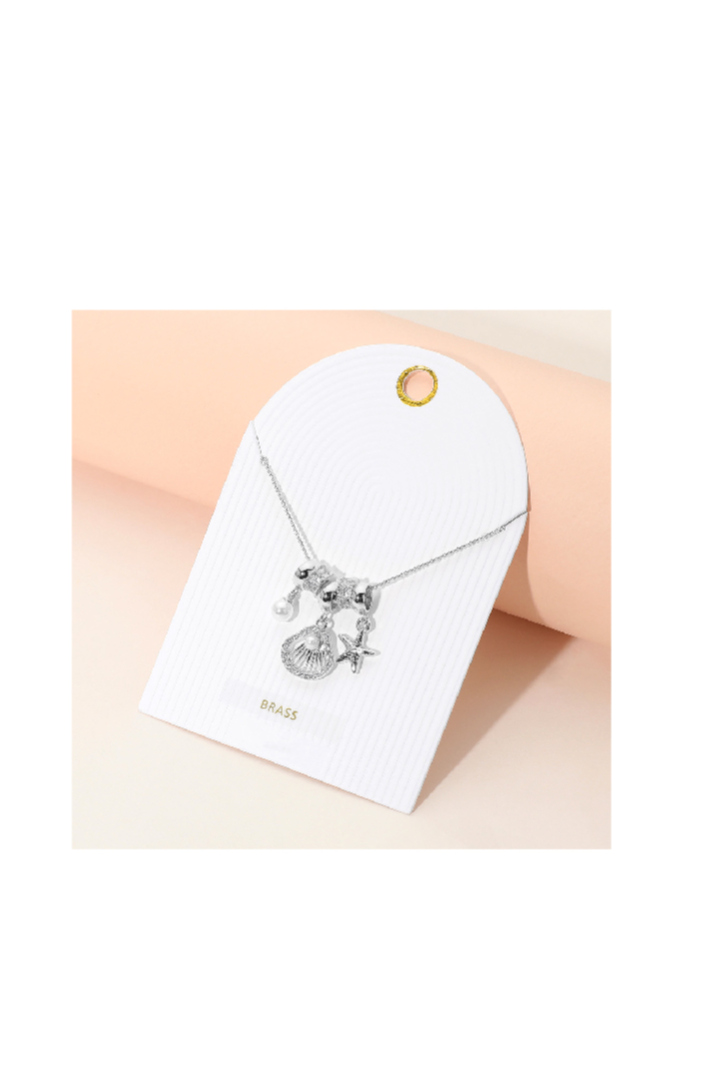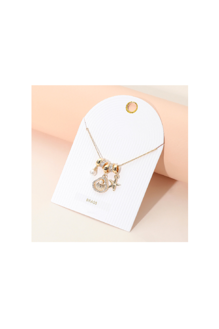 Pearl Stone Paved Sea Shell Starfish Charm Beaded Necklace