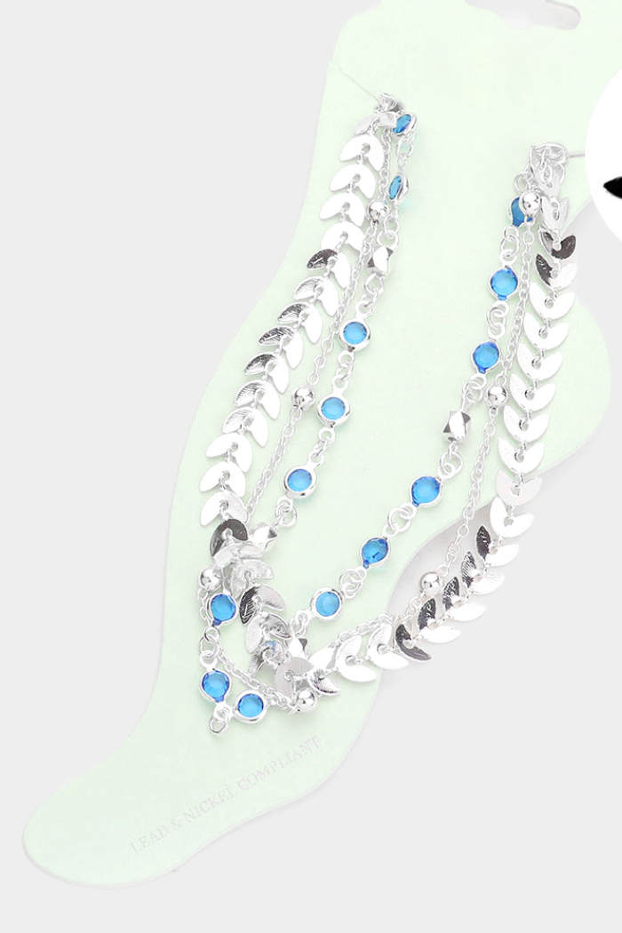 Round Bead Abstract Metal Link Triple Layered Anklet