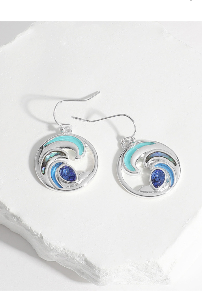 Teardrop Sea Glass Wave Circle Dangle Earrings