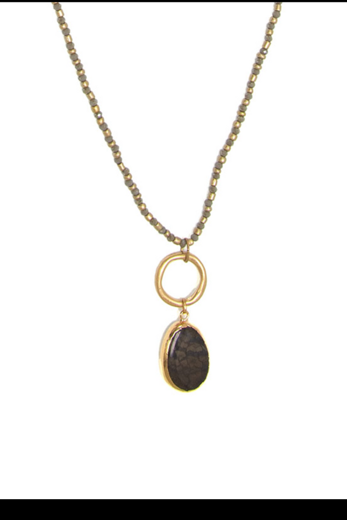 Gold Grey Beaded Agate Necklace