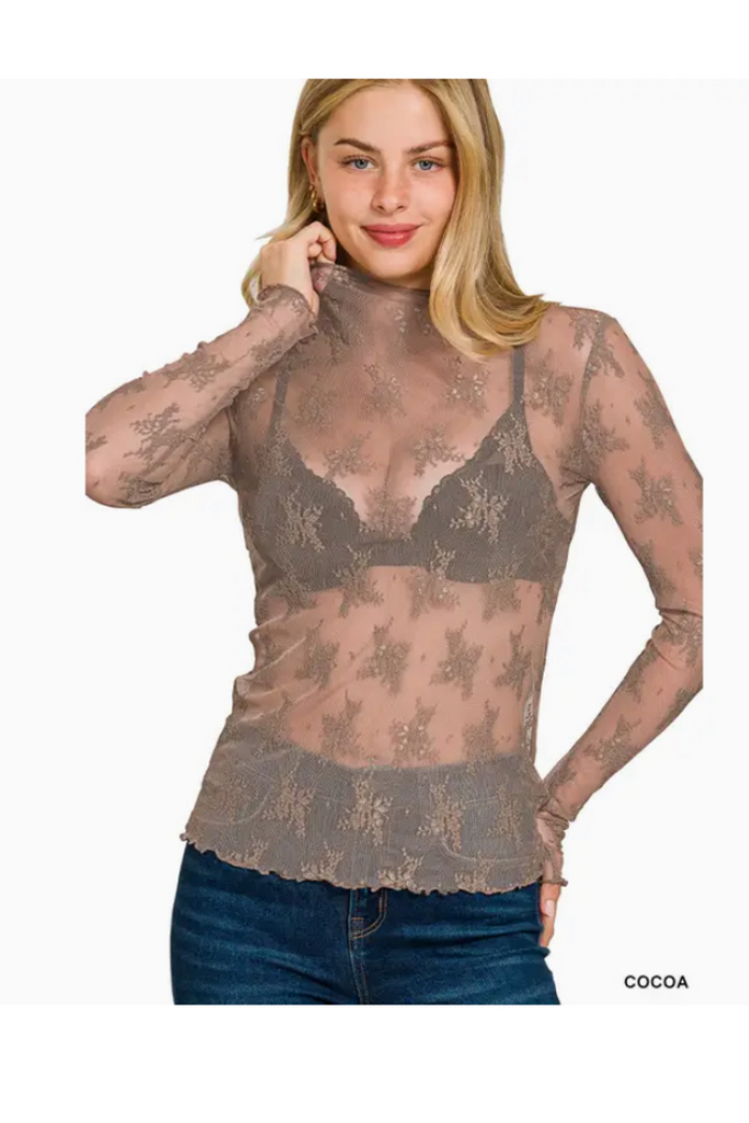Sheer Lace Long-Sleeve Top