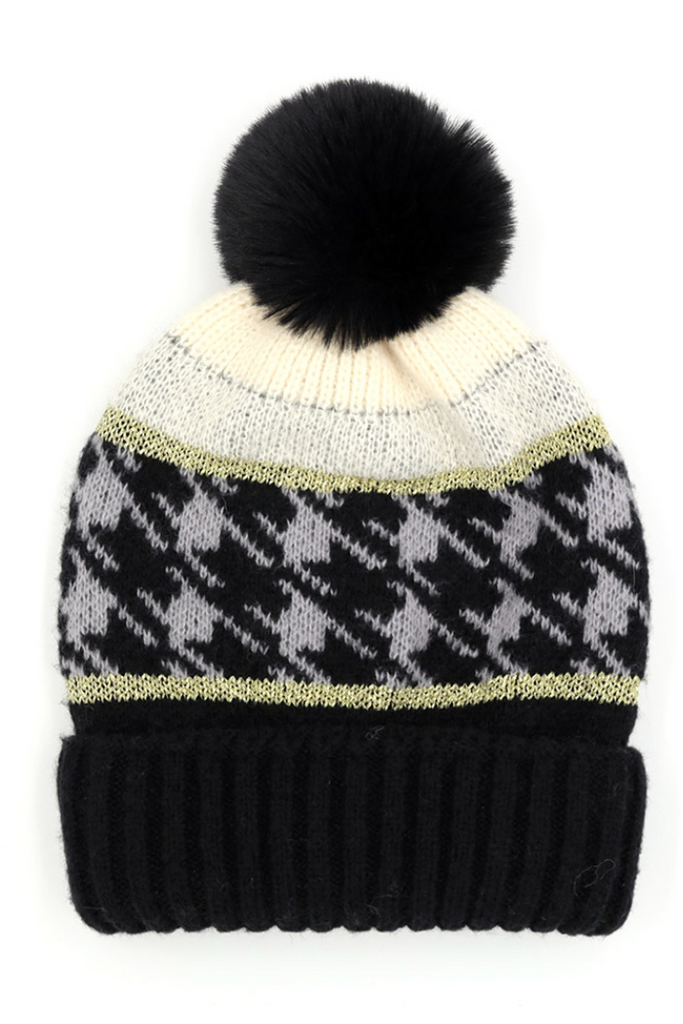 Houndstooth Pompom Hat