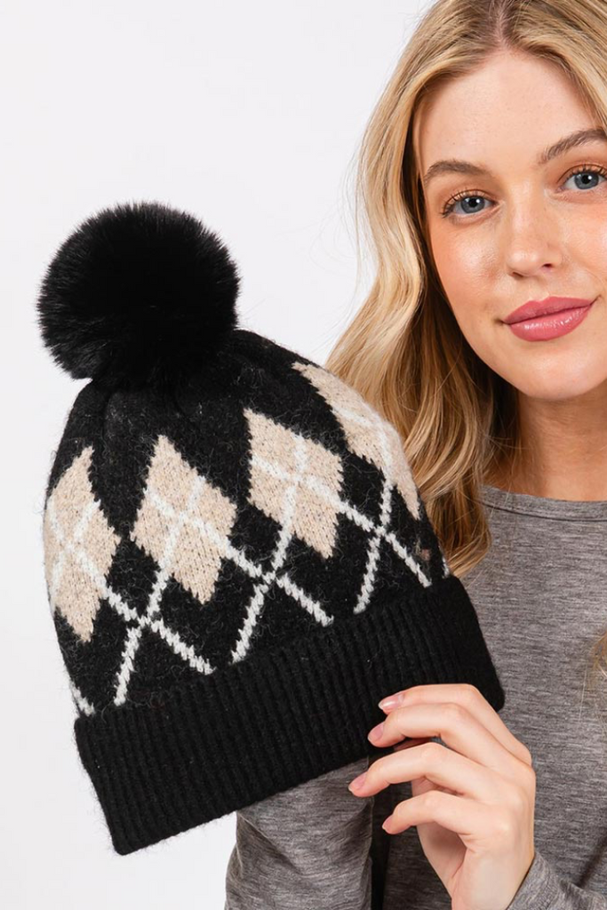 Argyle Pompom Hat