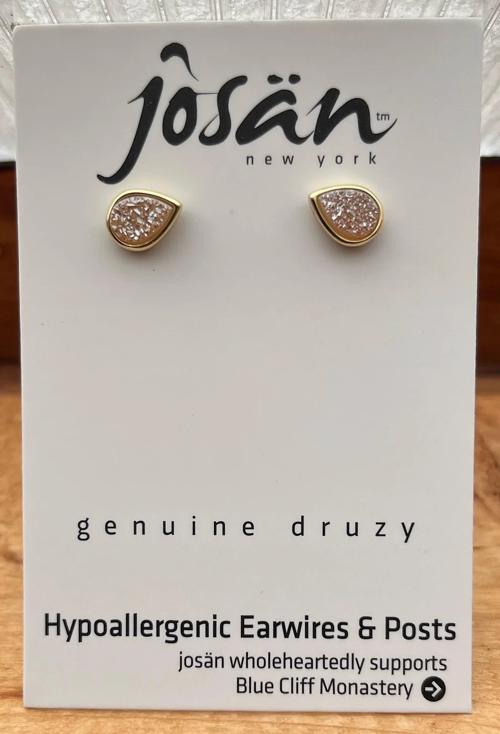 Pear Shape Genuine Druzy Hypoallergenic Pierced Post earrings with push on backs. Approx 6mm