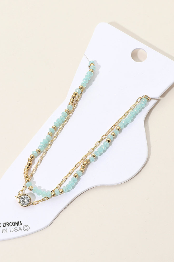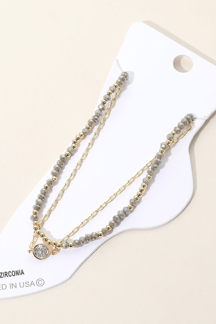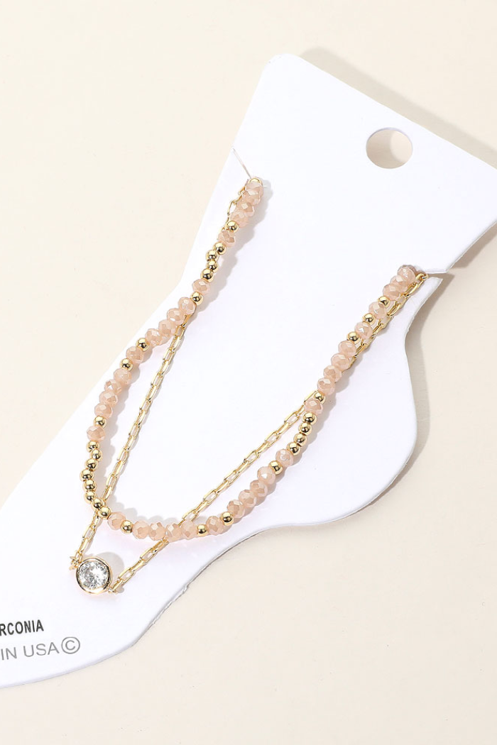 Bezel Accent Paperclip Chain Faceted Beaded Layered Anklet