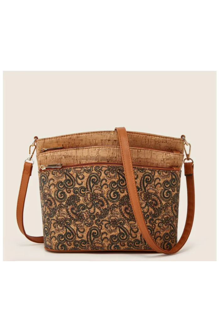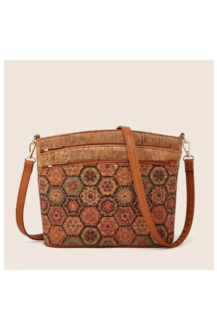 Unique Design Cork Lightweight Handbags with Adjustable Straps and 3 outer zipper compartments!