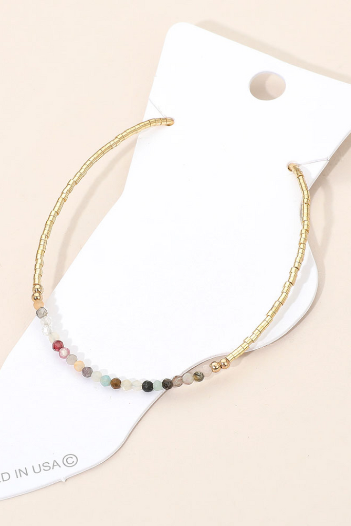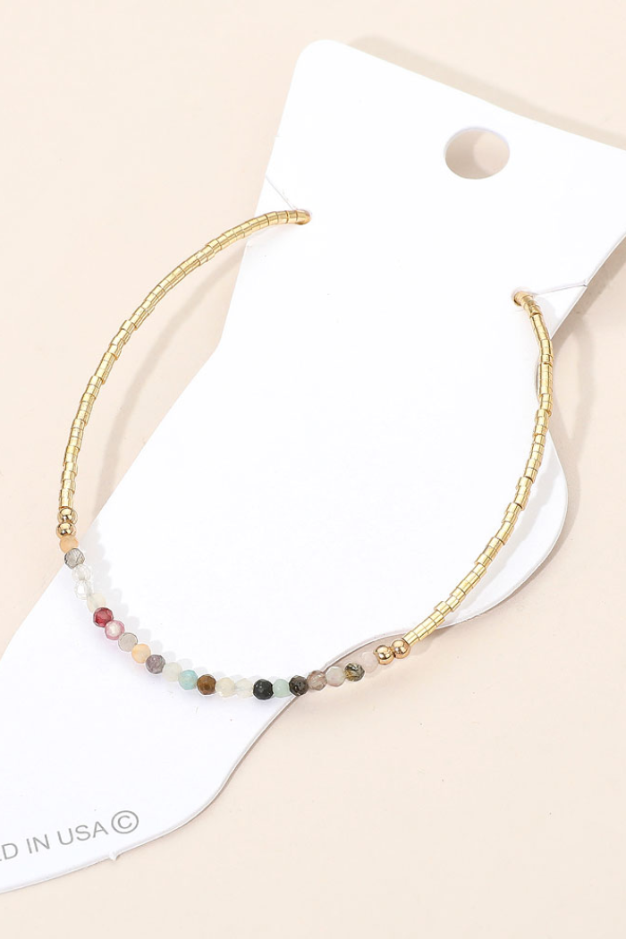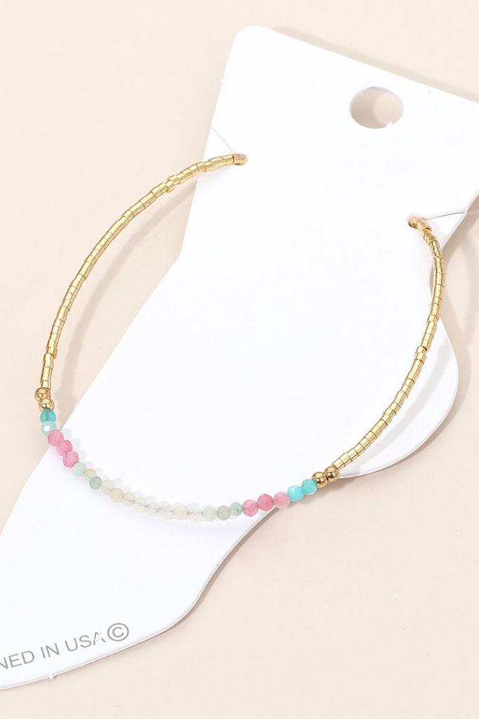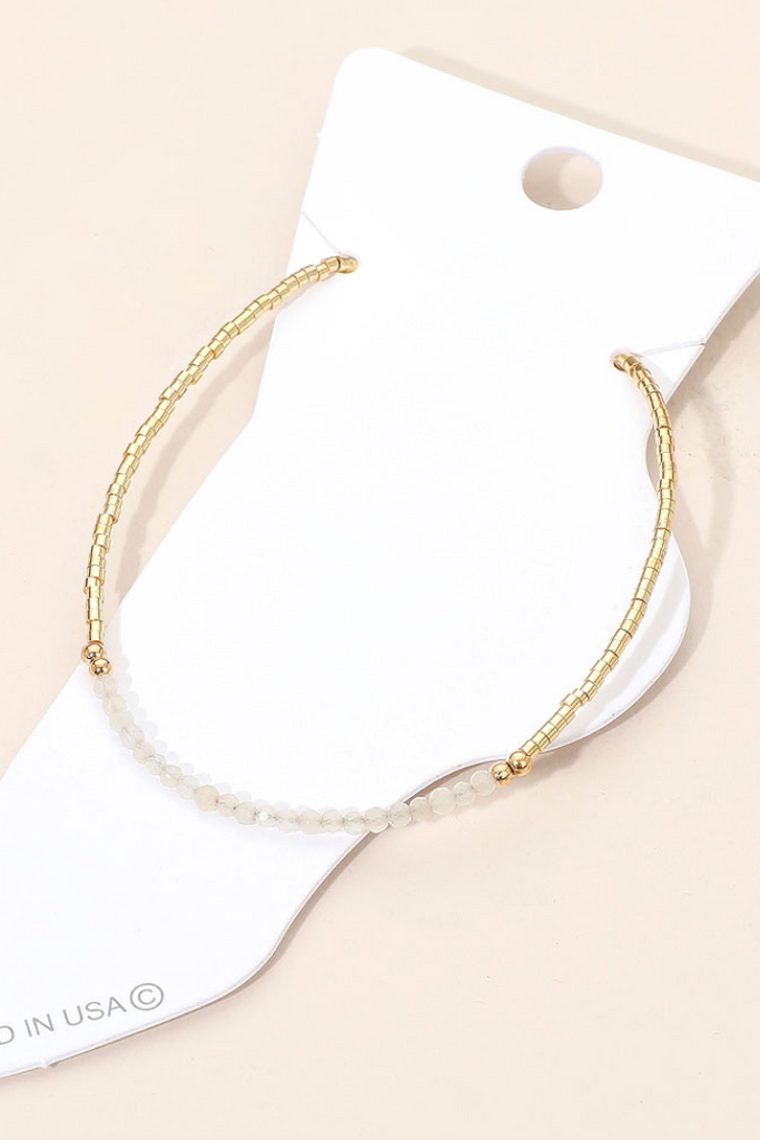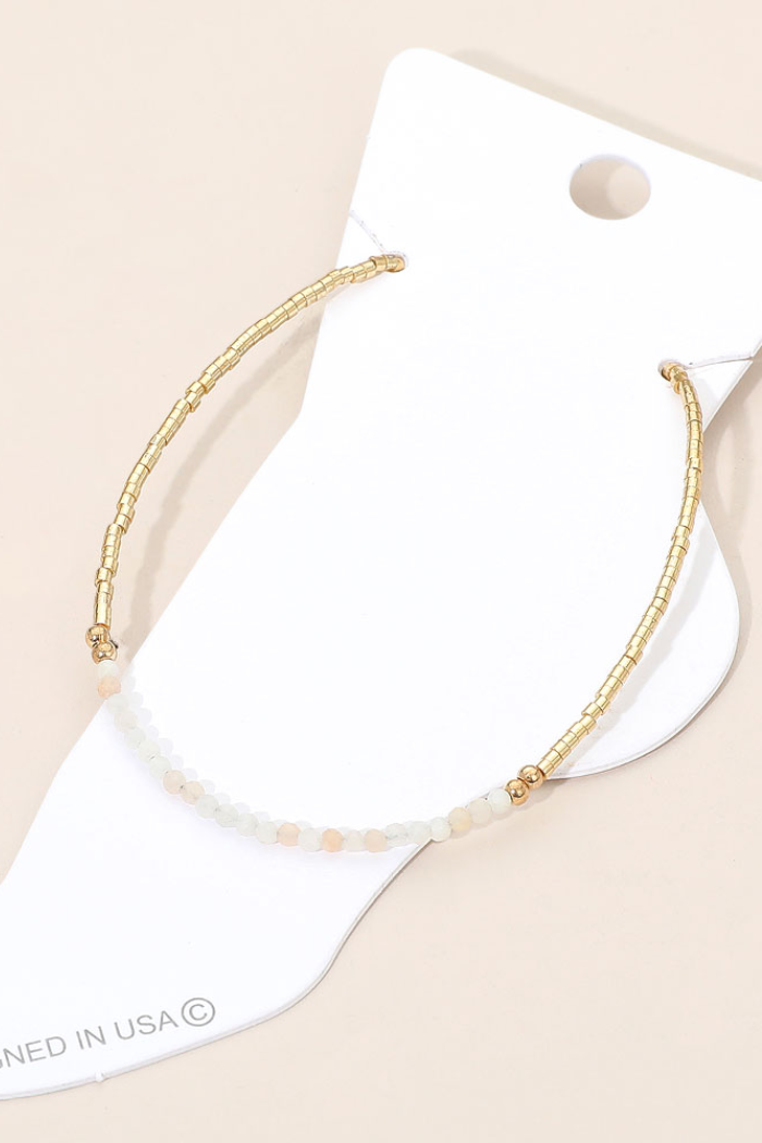Faceted Beaded Anklet - Beige / One Size is backordered and will ship as soon as it is back in stock.