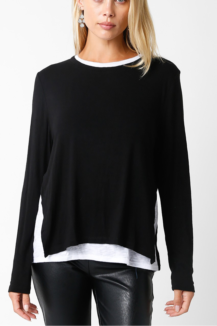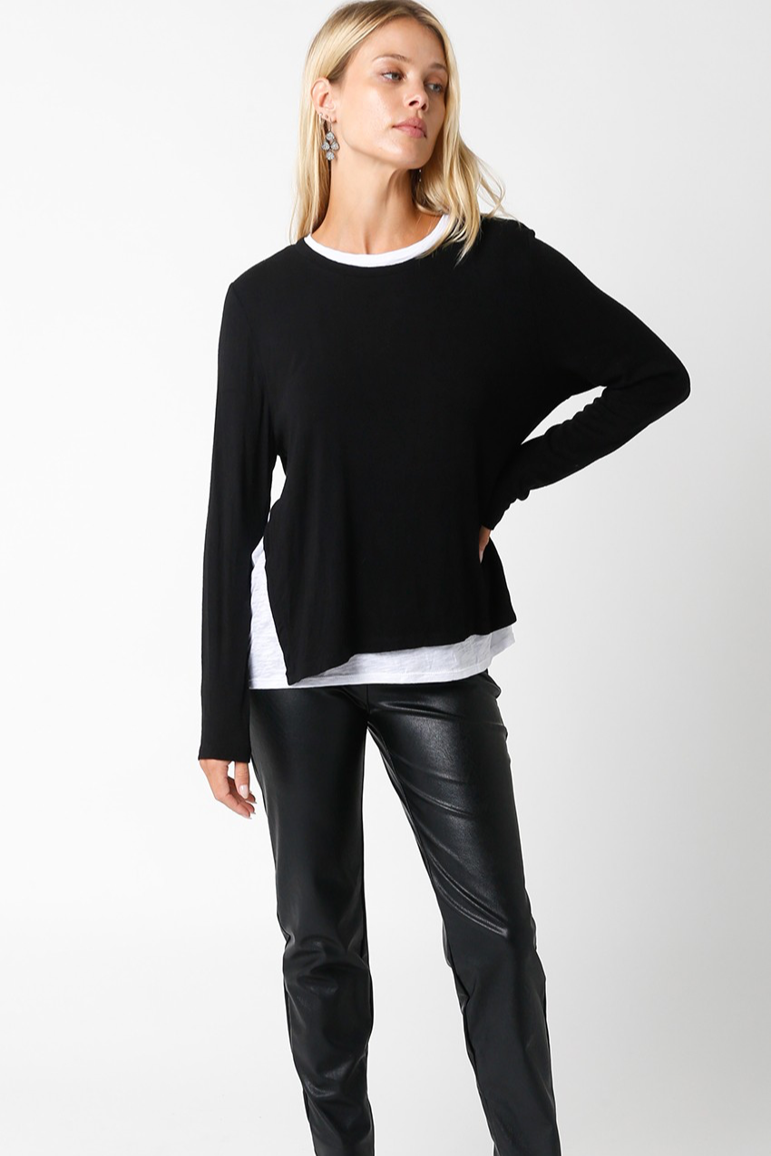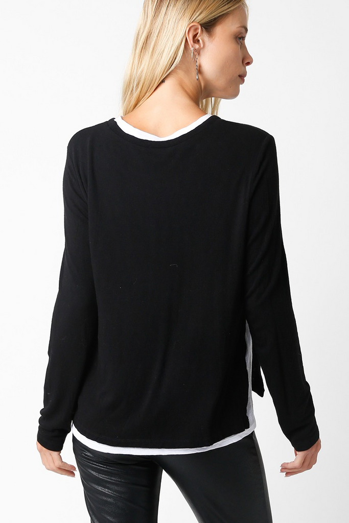 Cashmere feel Soft Long Sleeve Crew Neck Layered Look Sweater