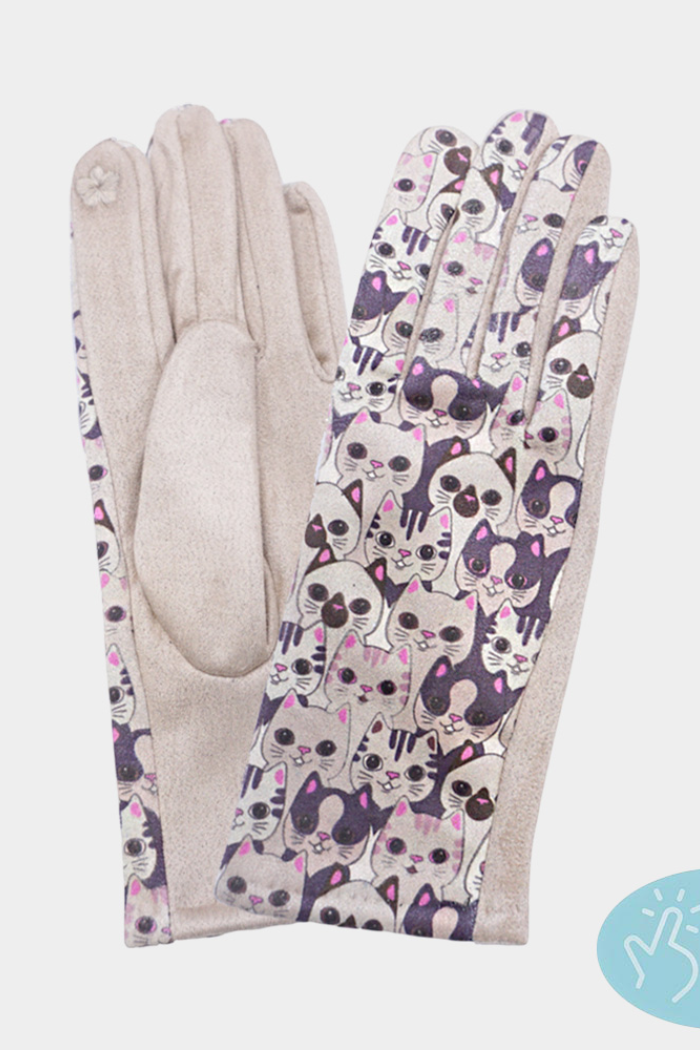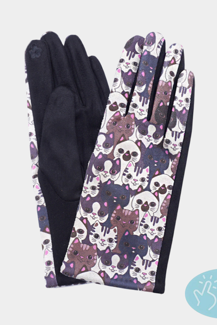 Super Soft stretchy Smart Touchscreen Gloves with cats on them.