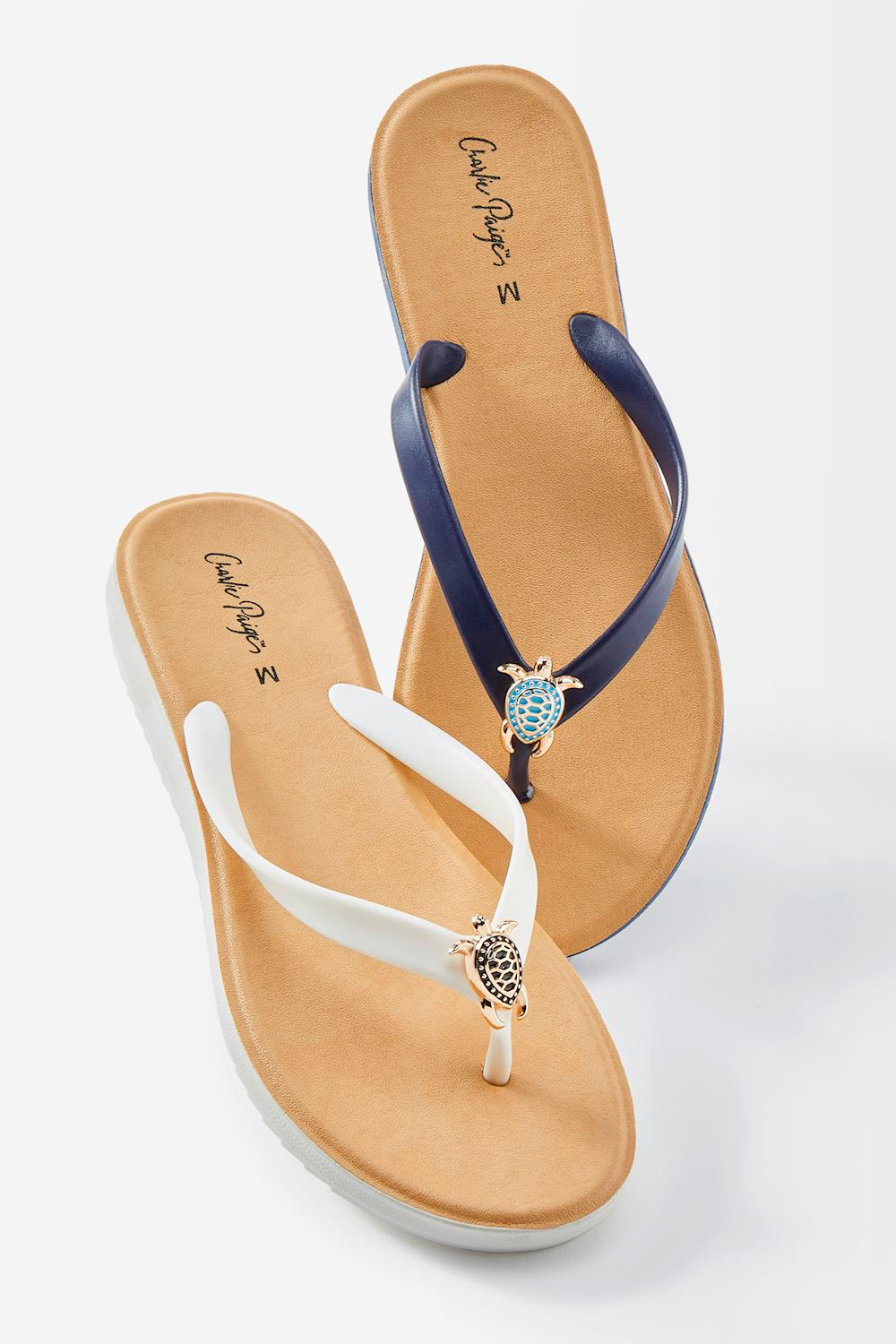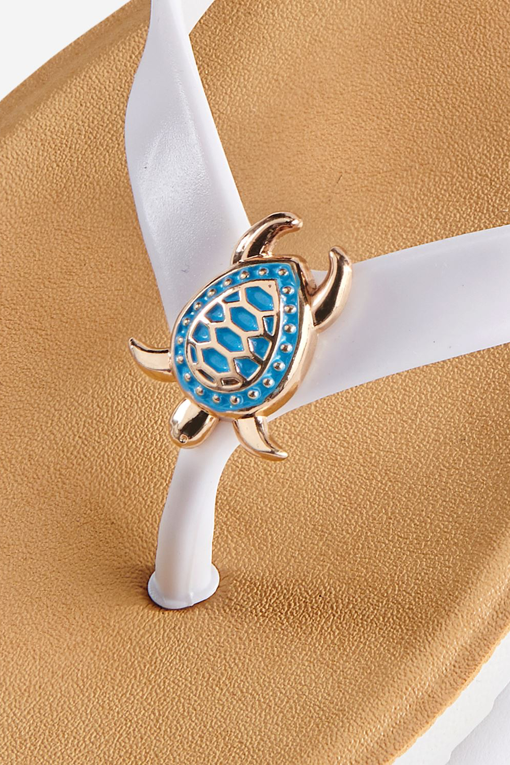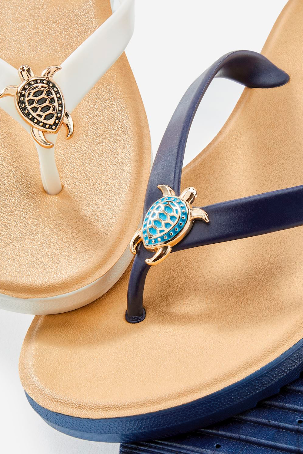 Turtle Embellishment Flip Flops - Blue / S is backordered and will ship as soon as it is back in stock.