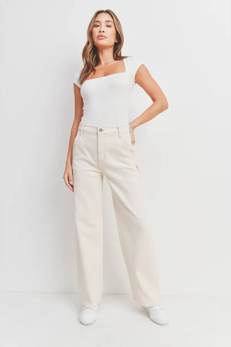 A high-rise waist balances out the ultra roomy legs on this pair, and two additional cargo pockets are great for keeping your tools handy, even if your “tools” are just lipgloss and your phone.